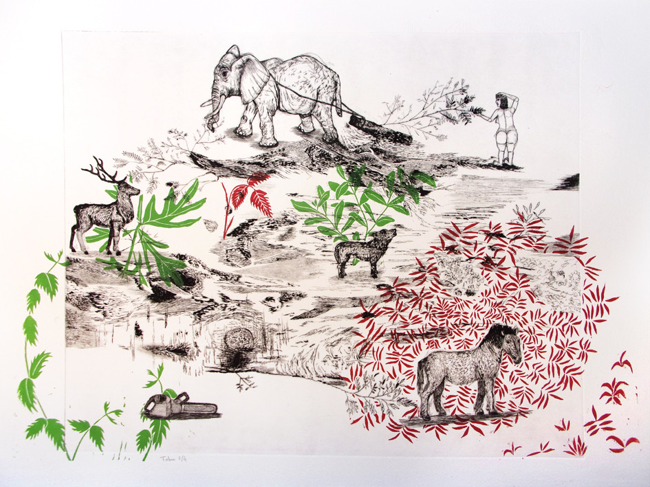J’ai grandi dans une ferme en polyculture/élevage située dans la région naturelle du Petit-Caux en Seine-Maritime (76). Le jeu et le travail dans les champs et les pâtures, entouré d’animaux domestiques et sauvages, ont façonné un lien au vivant qui continue d’alimenter mon travail artistique. Une expérience de 3 ans comme graphiste et illustrateur dans une association naturaliste dans l’Orne (61), puis une formation en estampe à l’école Estienne à Paris m’amène à développer, depuis 2013, un travail d’estampe et dessin autour des liens entre l’humain et le vivant.
