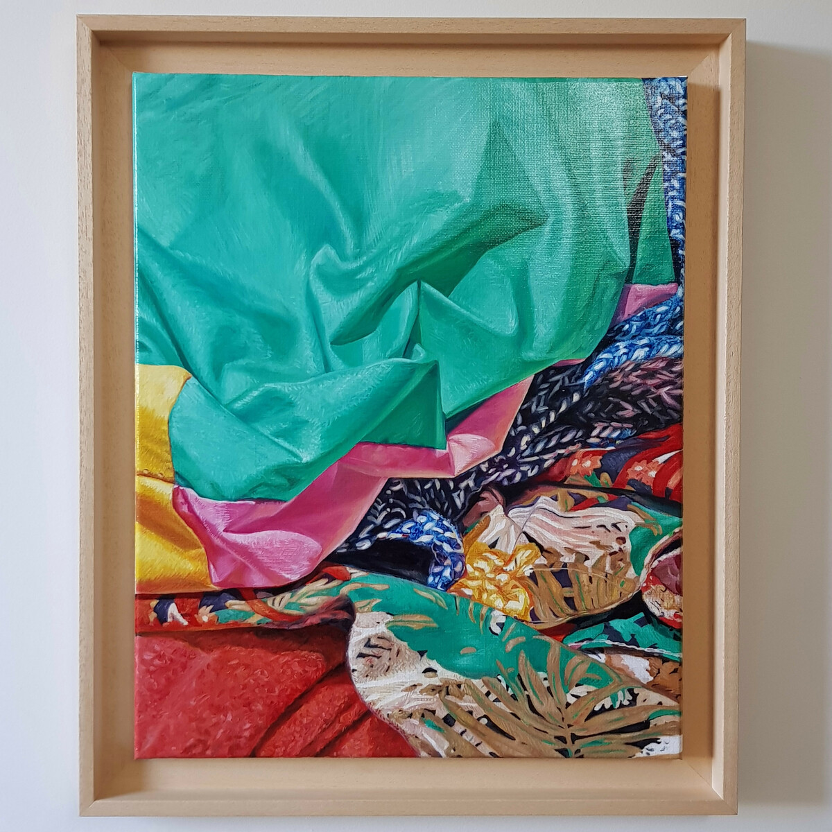 Je vis et travaille dans le Bessin. D’abord attiré par la peinture et le dessin, je sors de l’Esam Caen/Cherbourg en 2018. J’y développais des installations et des assemblages composés de matériaux pauvres et récupérés. Jeux de surfaces et de rapports colorés, ces assemblages appelaient un retour à la peinture. Aujourd’hui, j’explore uniquement ce médium.En plus des natures mortes, qui résultent de mes premières recherches plastiques, je peins des sujets floraux et parfois des portraits ou des scènes de genre.