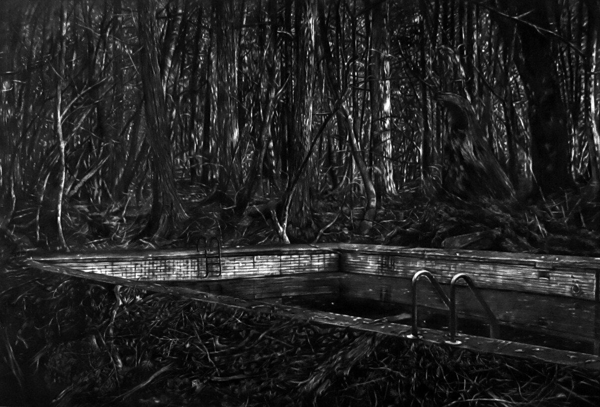 D’une oeuvre à l’autre, incendies, accidents de voitures et diverses catastrophes dialoguent avec des clichés de l’american way of life. Les travaux récents où apparait la couleur convoquent l’absurde et le grotesque pour mettre à jour une nostalgie du paradis perdu de la génération X.