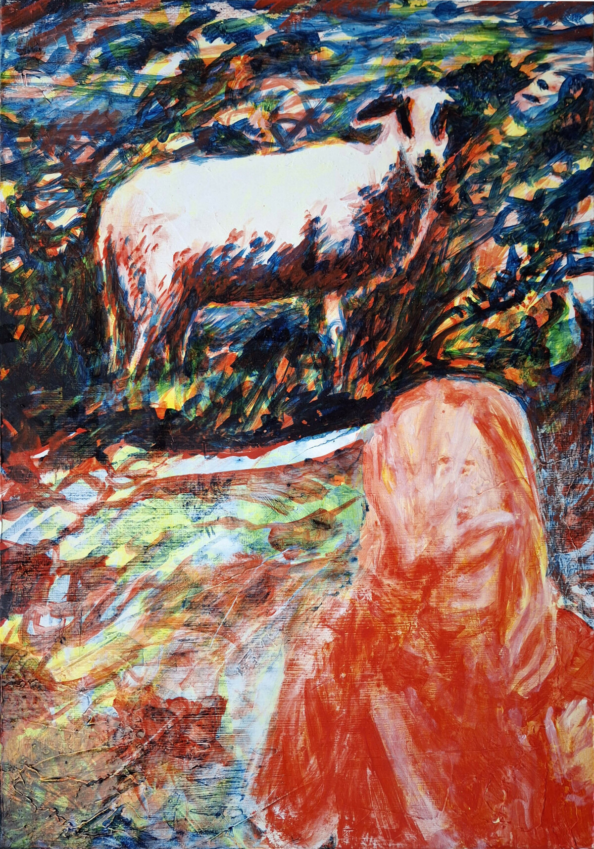 Inspiré de 2 photos. Réalisé sur une toile recyclée.