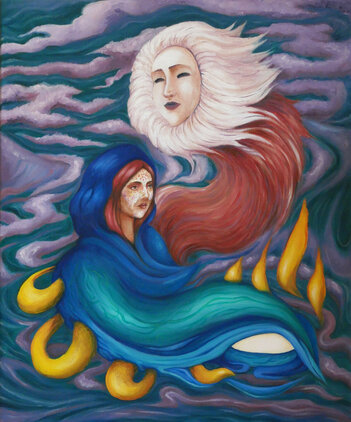 Œuvre de Elia Diogène : Artiste Peintre Plasticienne établie à Paris. A travers sa peinture, Elia Diogène, lie l’aspect formel, extérieur, au monde interne de la psyché. C’est une recherche sur le rôle que l’inconscient peut avoir dans la création, répondant à l’envie de connaître au-delà des formes et des matières ce que cache l’ Art de notre esprit. Ces œuvres, aux personnages et formes mystérieuses, renvoient à un monde imaginaire. Le jeu du drapé et de la toile renforce le sentiment dramatique et permet de lier la superficie peinte à un aspect plus sculptural. Sa diversité d’influence varie entre la théorie et les mouvements artistiques comme le surréalisme, l’art brut ou encore l’art ethnique. De plus, sa réfection artistique comprend une vision plus psychologique et philosophique sur le rôle de l’existence psychique. Diplômée d'un Master Art Plastique de la Sorbonne, son atelier actuel se situ au Gros Lot des Soukmachines.