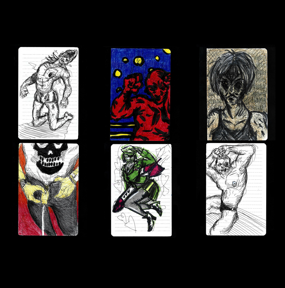 Il parsème ses cahiers de monstres et de guerriers alimentés par les films, les jeux vidéos et les mangas qu’il consomme en cachette pendant toute son éducation secondaire.
