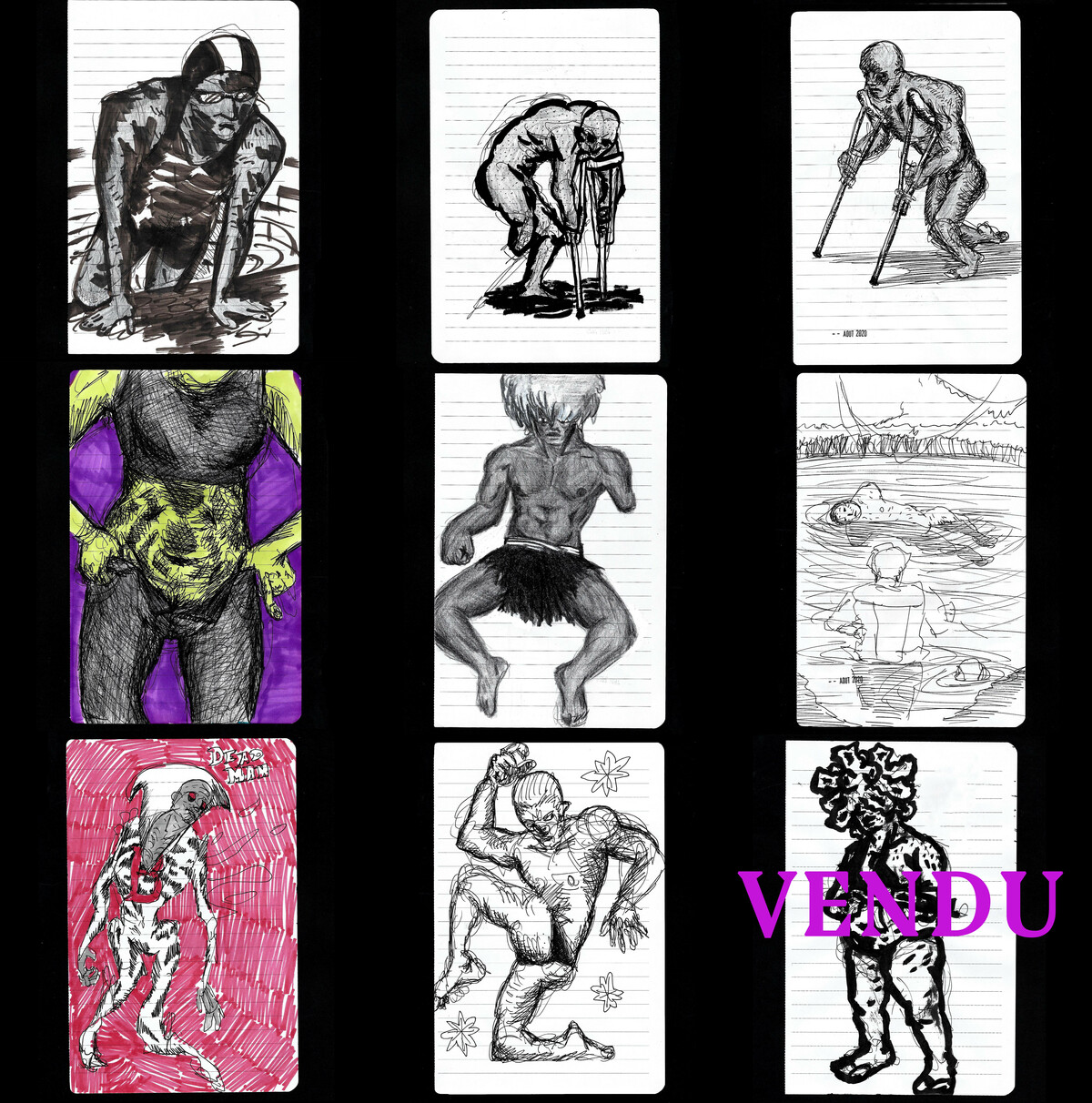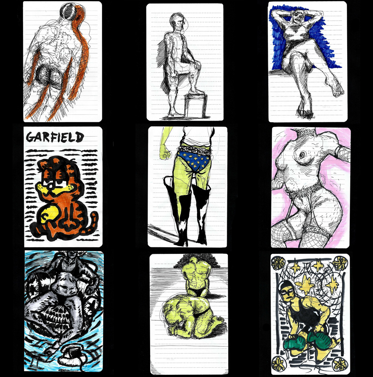 Pages datée et signée issue d'un carnet Eccolo réalisé et exposées au Labo des Arts à l'occasion de l'exposition "The Horny Never Die". (Dessins livré dans une pochette cristal à PH neutre.)