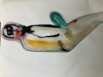 Diplomée d'un master en art mention très bien (Université Panthéon-Sorbonne), Larissa Riahi travaille sur les questions de place et d’identités et sur les frontières physiques ou mentales. Elle explore avec le dessin, une autre forme de témoignage. Ces visages hybrides sont comme des transfigurations de l’humain, des êtres transformés qui laisseraient leur humanité apparaitre par l’onirisme qui les habitent. Ces figures anthropomorphiques ouvrent sur la part de monstruosité et d’animalité de l'humain. L’encre a un côté très organique et une vie propre créant des silhouettes chimériques à la fois humaine et irréelle. Ils existent ici pour créer un autre possible.