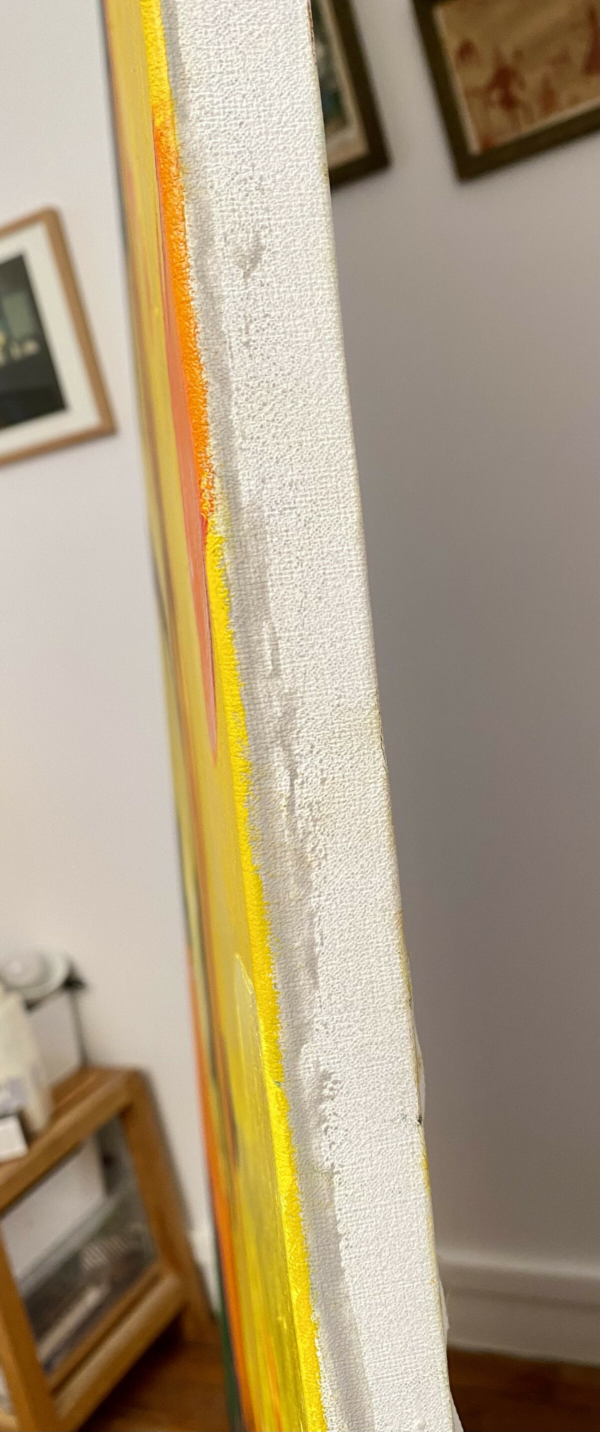 Cette œuvre nous plonge dans l'intimité d'un couple au gré de couleurs symboliquement chaudes et fauves. Un moment suspendu, hors du temps et hors de la civilisation, renvoyant à un jardin d'Eden mythologique. Qu'ils s'agisse du paysage ou des corps, les formes s'entrelacent, reflétant l'harmonie et la passion. Les teintes vibrantes de la peinture à l'huile renvoient aux émotions et aux forces de la nature. Une célébration de l'amour dans un petit paradis.