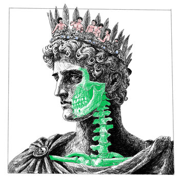 Je m'inspire de la vision des anciens dieux vu par une IA générative comme base pour mes dessins numérique. Impression numérique format A3 sur papier texturé.