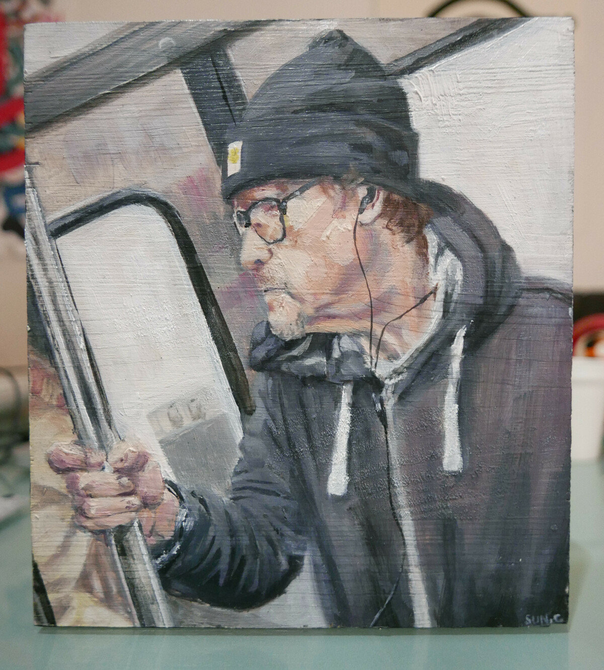 Une partie de ma production se concentre sur les habitants des quartiers populaires que je croise dans mon quotidien. Au-delà d’une simple série de portraits, je cherche à mettre en lumière la complexité de leurs émotions et de leurs sentiments. L’observation de mon environnement me permet de détacher des « tranches de vies » pour les intégrer à travers ma peinture dans le « portait social ». A travers ma production, je tends à mettre en avant une facette de la société aux antipodes des images « parfaites » que nous renvoient au quotidien les réseaux sociaux et la publicité.