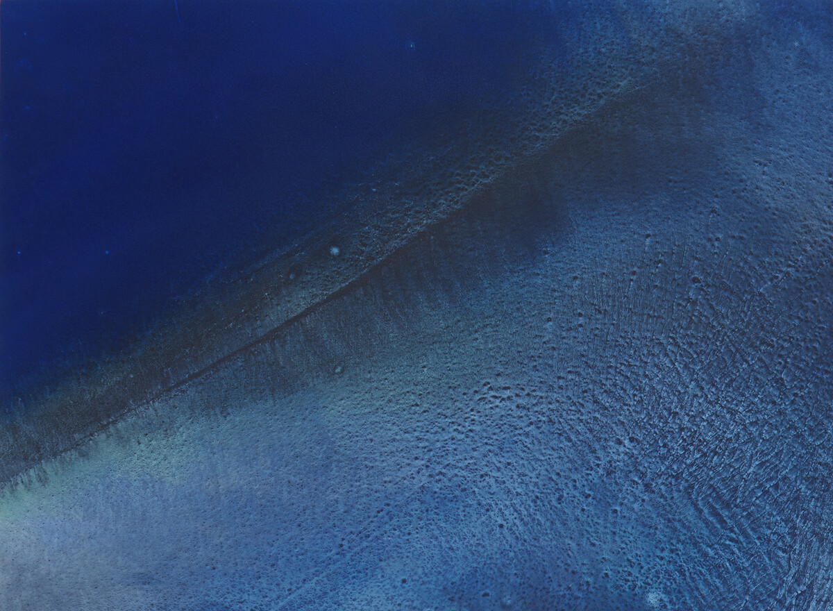 Attentive au vivant, à la beauté brute et aux forces naturelles, j’obtiens une licence arts-plastiques avec mention, puis j'exerce 10 ans comme maquilleuse artistique avant de me consacrer pleinement à la peinture. En 2014, je deviens artiste-auteur et travaille au 6b, centre de création et de diffusion, à Saint-Denis jusqu’en 2020. Dans ce tiers-lieu mon expérience est marquée par de nombreuses expositions collectives. Installée depuis 2021 dans la Drôme, j’approfondis en 2023 ma formation professionnelle en peintures naturelles, dont les techniques sont devenues centrales dans ma pratique. Mon œuvre abstraite, de plus en plus minimaliste, s’inspire des motifs créés par la nature : terres craquelées, strates minérales, sillons creusés par l’eau. Mon travail interroge ce qu’il reste après le passage de l’eau, force motrice, aléatoire et transformatrice. Lorsqu’elle entre en contact avec les composants de la peinture à la surface du papier, leurs interactions font émerger des formes organiques et des structures éphémères, qui finissent par se figer. Lorsque l’eau disparaît, elle laisse dans son sillage la mémoire de son passage, désormais figée en paysage. Goldsworthy, Penone et Soulages m'inspirent. Une anecdote marquante demeure : le jour où, dans mon atelier, je fus fascinée par la naissance de formes qui émergeaient comme « sculptées par la nature ». Ce moment a confirmé la voie de ma recherche : laisser dialoguer la peinture avec les éléments la constituant.