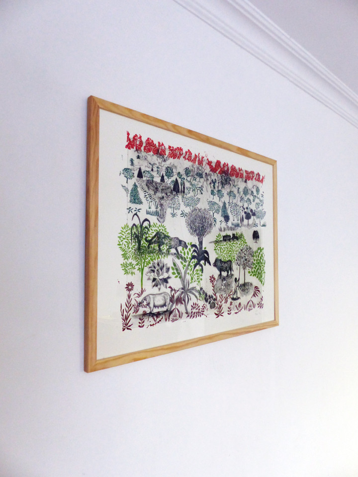 Estampe en linogravure et pointe sèche imprimée sur papier vélin d'Arches 250 gr. // prix : 250 euros non-encadré // 275 euros avec un cadre en bois 65 x 50 cm