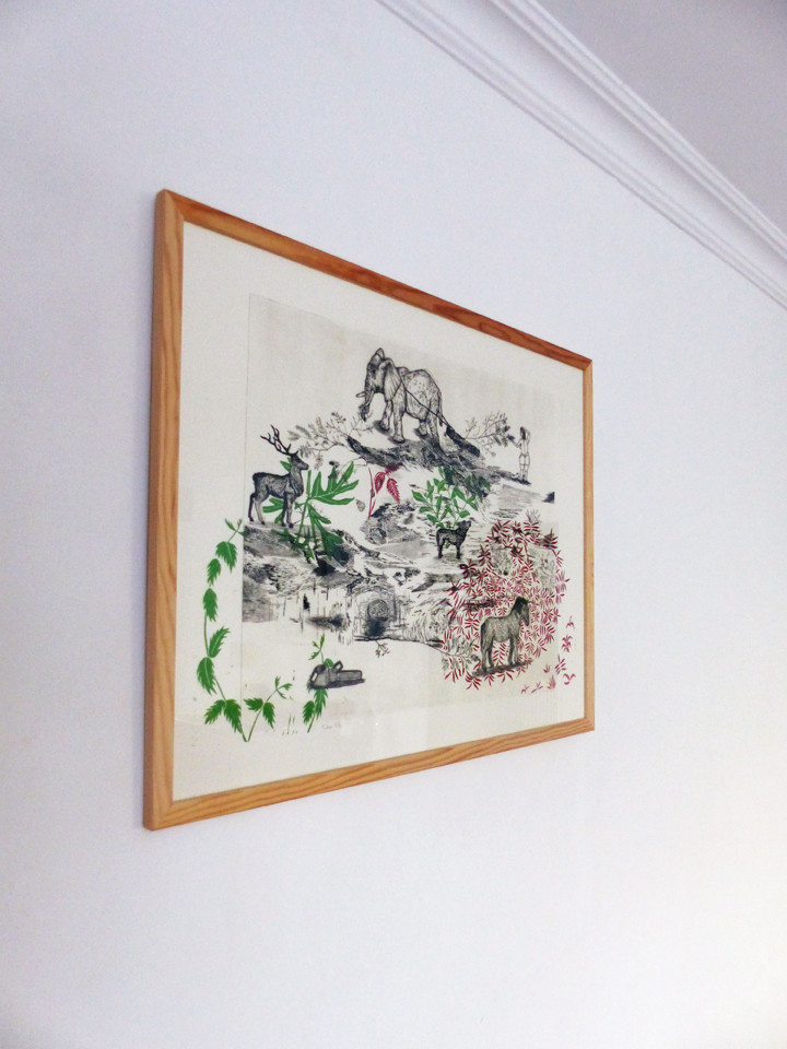 Estampe en linogravure et pointe sèche imprimée sur papier vélin d'Arches 250 gr. // prix : 250 euros non-encadré // 275 euros avec un cadre en bois 65 x 50 cm