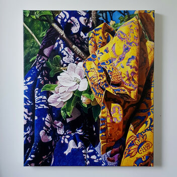Je vis et travaille dans le Bessin. D’abord attiré par la peinture et le dessin, je sors de l’Esam Caen/Cherbourg en 2018. J’y développais des installations et des assemblages composés de matériaux pauvres et récupérés. Jeux de surfaces et de rapports colorés, ces assemblages appelaient un retour à la peinture. Aujourd’hui, j’explore uniquement ce médium.En plus des natures mortes, qui résultent de mes premières recherches plastiques, je peins des sujets floraux et parfois des portraits ou des scènes de genre.