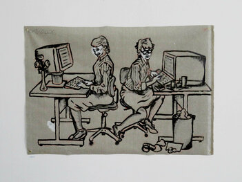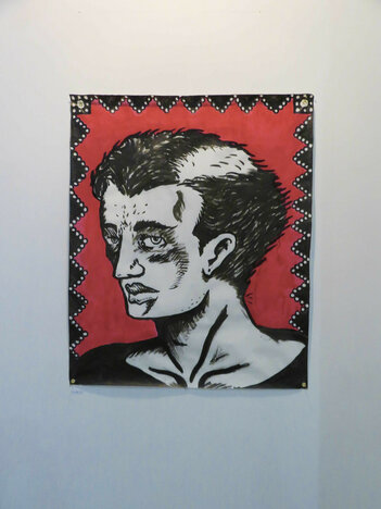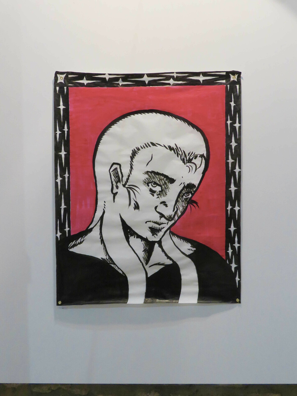 Portrait original réalisé pour mon exposition "le temps viendra." Encre sur calque d'architecte grand format, 4 œillets métalliques aux angles.