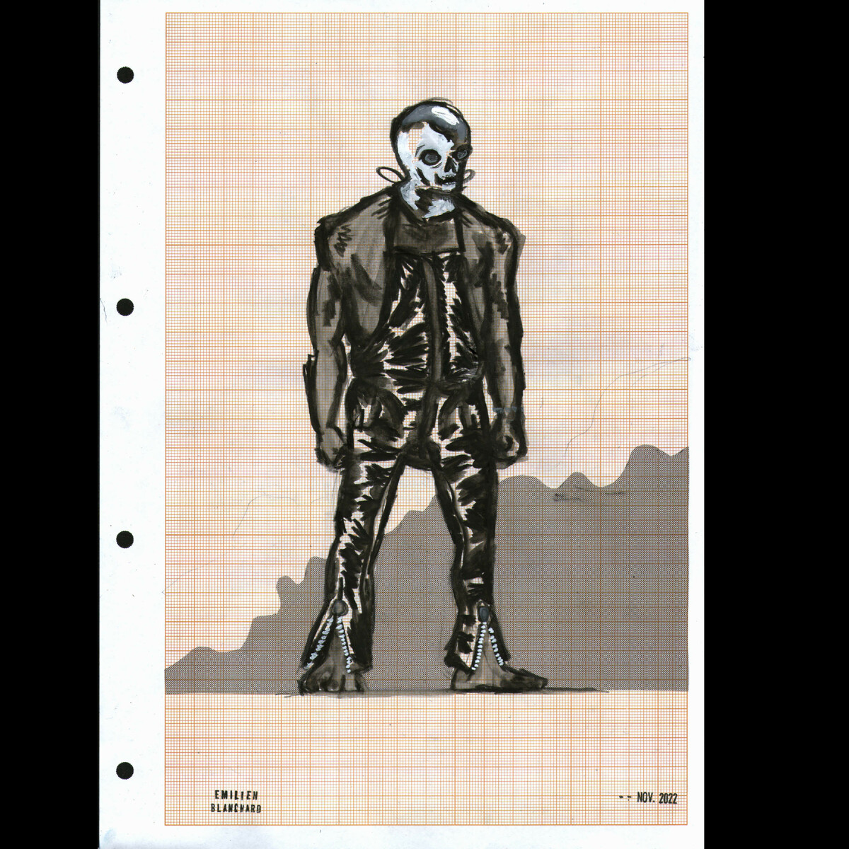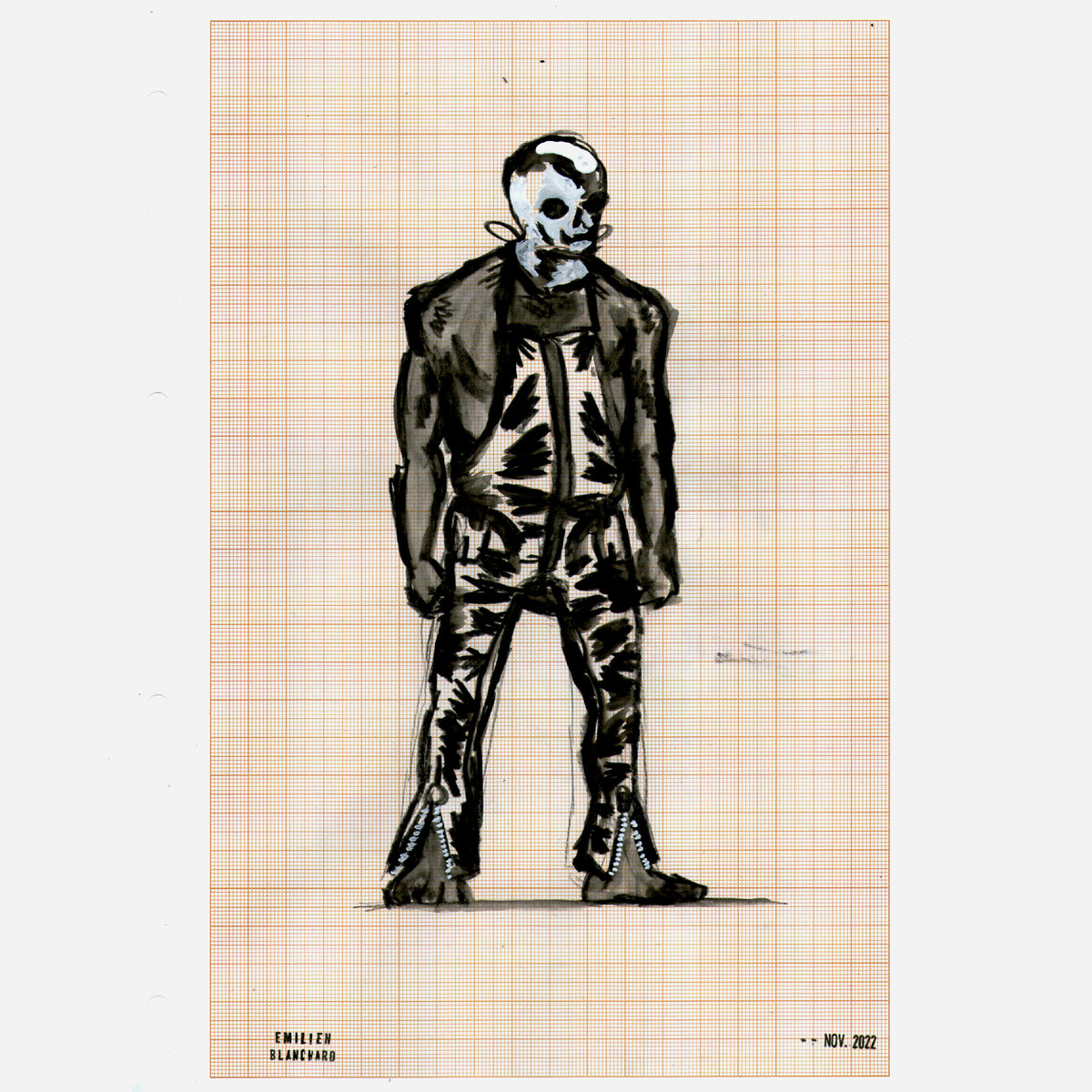 Dessin daté et signé sur page millimétrée réalisé en novembre 2022. (Dessins livrés dans une pochette cristal à PH neutre.) contact : blanchard.emilien@gmail.com