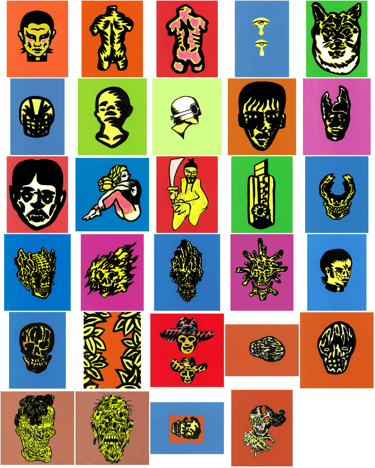 Série de dessins signés vendu à l'unité (prix de groupe a négocier). Dessins à l'encre de chine sur adhésifs fluorescents collé sur papiers colorés. (Dessins livrés dans une pochette cristal à PH neutre.) contact : blanchard.emilien@gmail.com