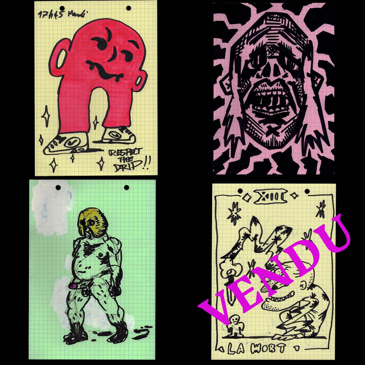 Feuilles bristol signée réalisée en 2021 et exposées au Labo des Arts à l'occasion de l'exposition "The Horny Never Die". (Dessins livrés dans une pochette cristal à PH neutre.) contact : blanchard.emilien@gmail.com